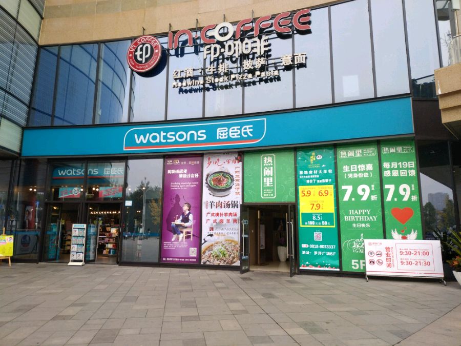 屈臣氏二店,楼上是来自韩国的印咖啡。