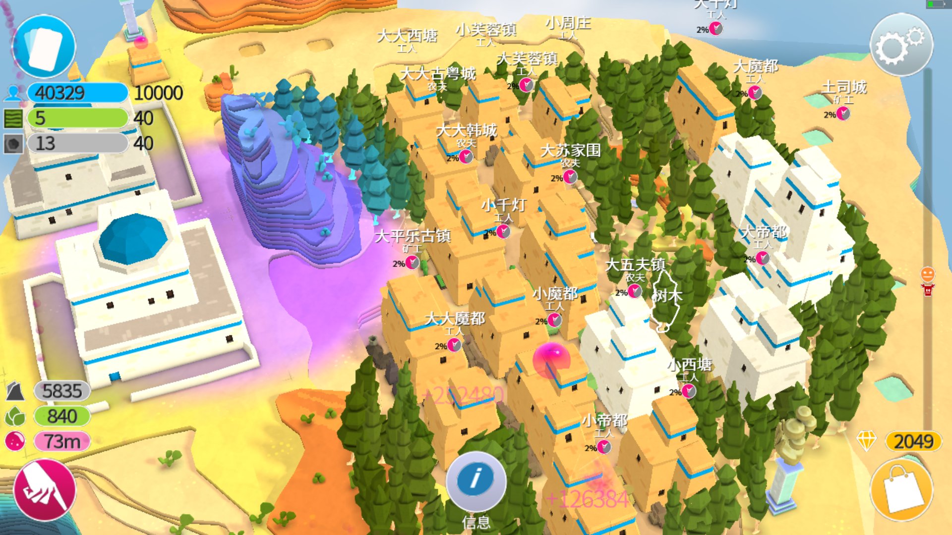 合并面积最大16的普通居所,直到建造出高效内聚家树野、树数量多体积小、容量大人口多的信仰城集群