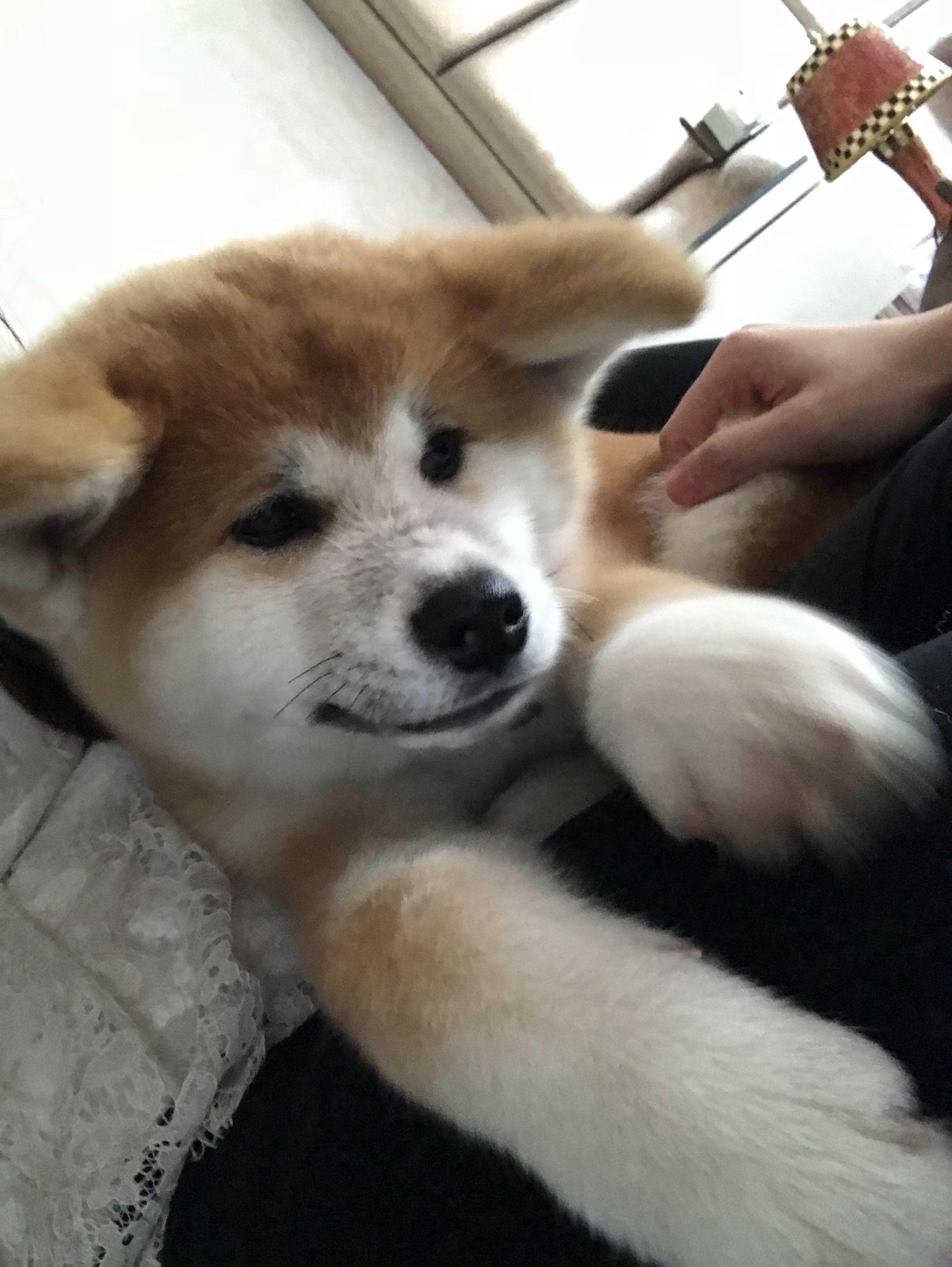 哈哈,给狗狗拍照难度很大的,秋田一般不配合,多练习,狗狗刚回去,先让它适应适应