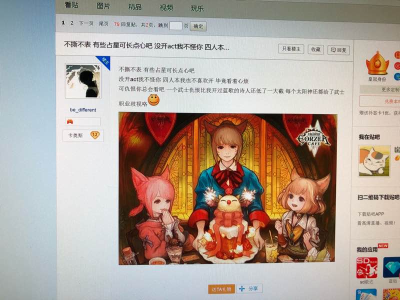 ID我记不清了,闲的没事来贴吧正好看看,我觉得你是在说我吧,我是跟武士一起排的,主业玩DPS全天开着ACT,玩这个游戏不久我还真不会看仇恨,但是全程武士伤害比你高为什么我不能给他,刚玩占星不久,听说放浪神对诗人提升大我也没给别人,就算你真的伤害比武士高,认真的我自己的卡烧掉也是我的自由,你自己诗人技能都没熟练呢或者故意不开魔人不认真打DPS为什么我太阳神要给你?你缺蓝给你蓝,武士缺技我给建筑神,DK也拉的很稳基本从不2波怪一起,我跟T输出加起来跟你们2个DPS平均值一样,全程真的没碰上需要婊人的问题