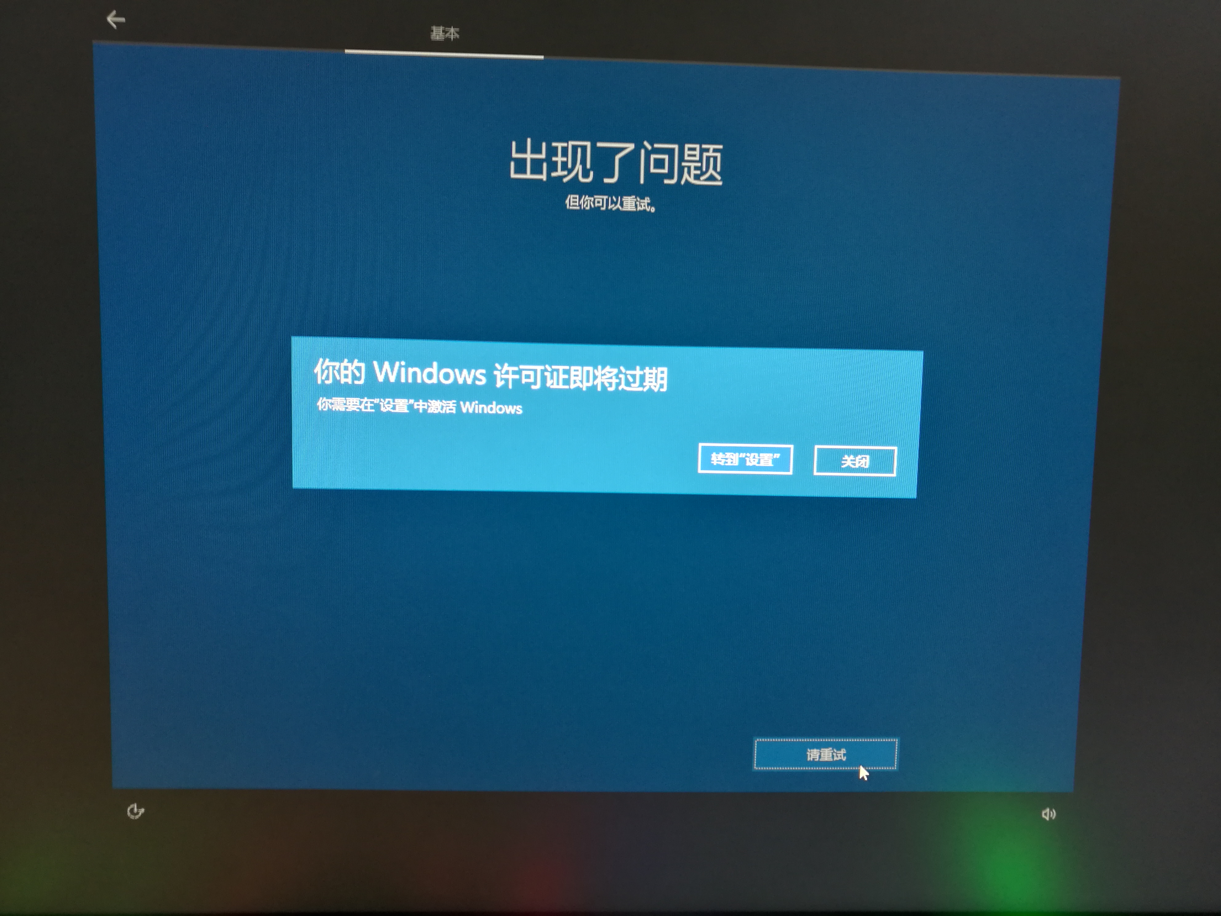 ,天天提示我激活,我就想试着恢复系统试试看,然后卡在这里进不去了,点了设置也不行
