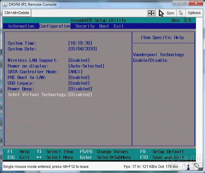 2、Insyde BIOS机型(1)进入BIOS,选择Configuration选项,选择Intel Virtual Technology并回车。