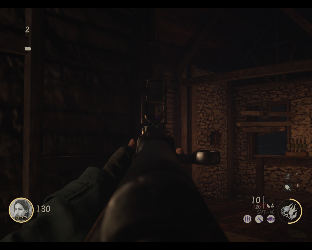 击中煤油灯后,会点燃紫色火焰,并有乌鸦叫的声音。10个都击中后,门会自动打开,可以抽枪,每次1000。