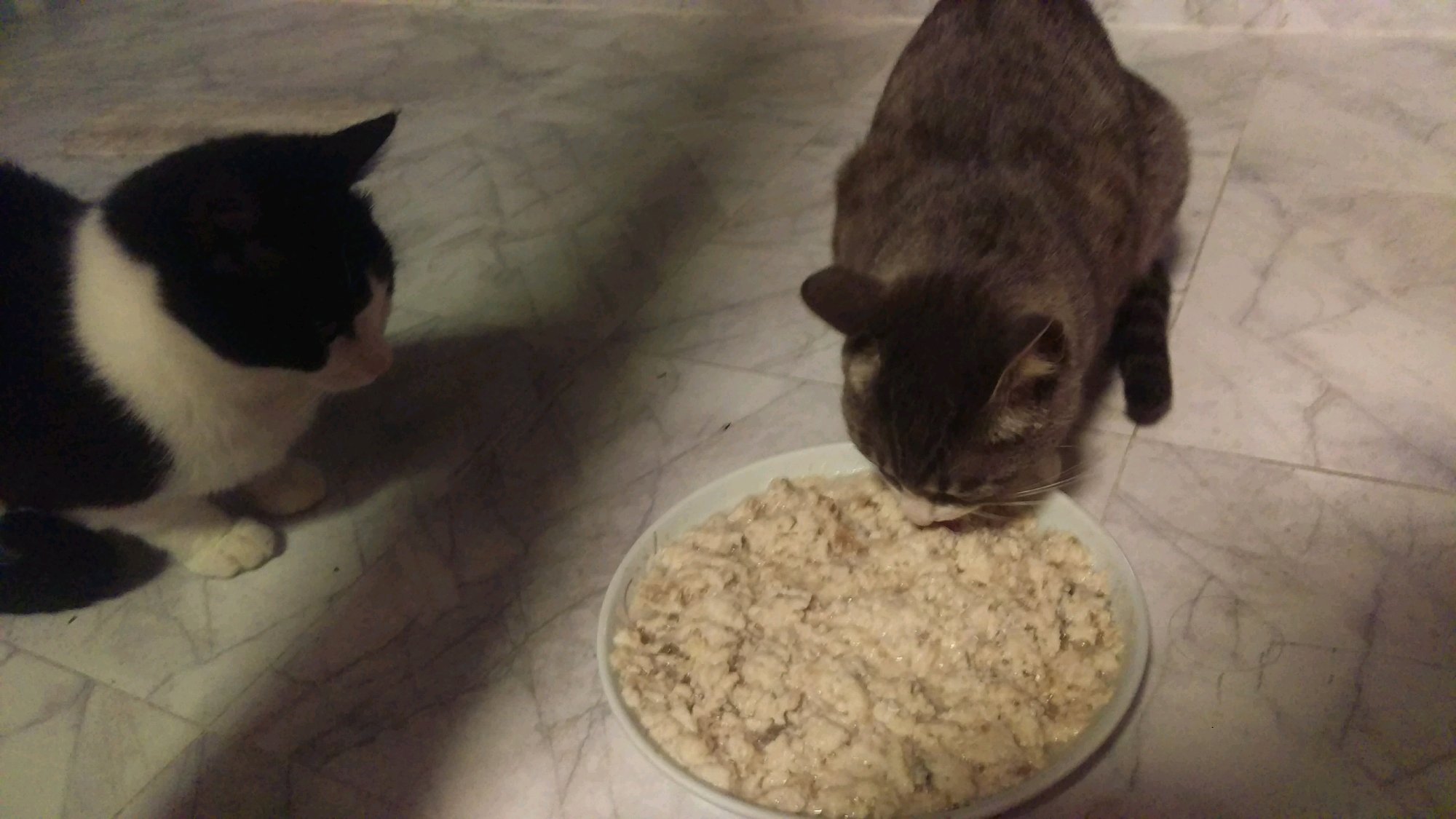 但是结果是。。给狸花补身体的蒸鱼肉鸡肉泥,她刚吃没多久,崽崽叫了,就去喂奶,奶牛就跑来吃了。。
