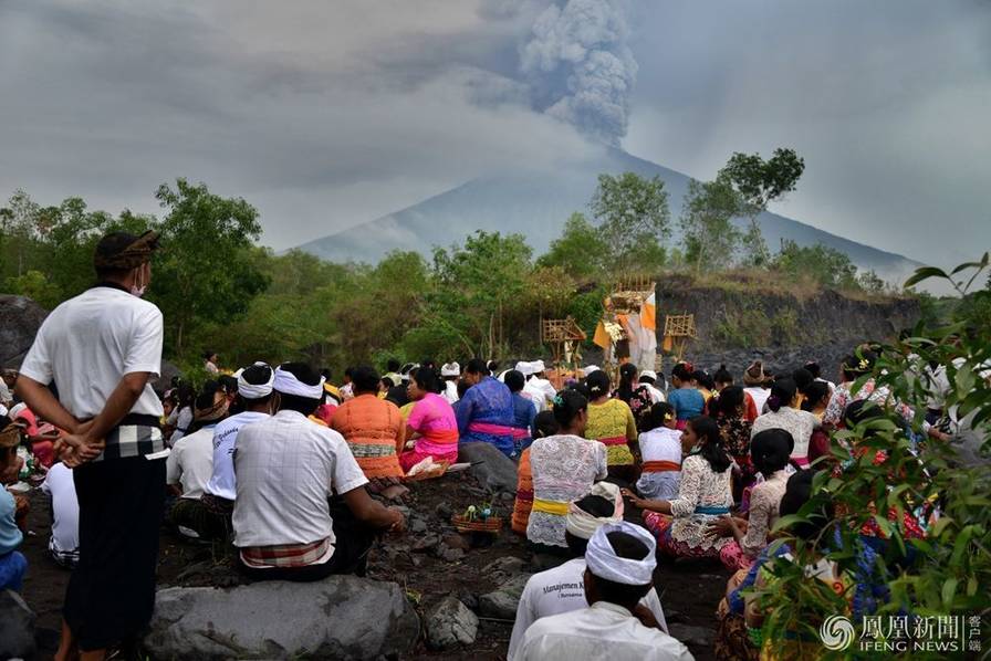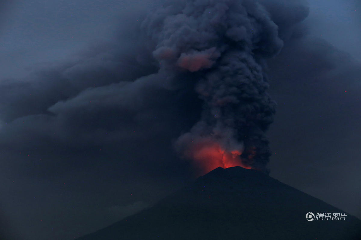 11月27日,印尼巴厘岛卡朗阿森,阿贡火山喷发。