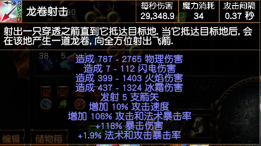 龙卷射击+多重+暴击率+暴击伤+附加火伤+投射物理物理伤害