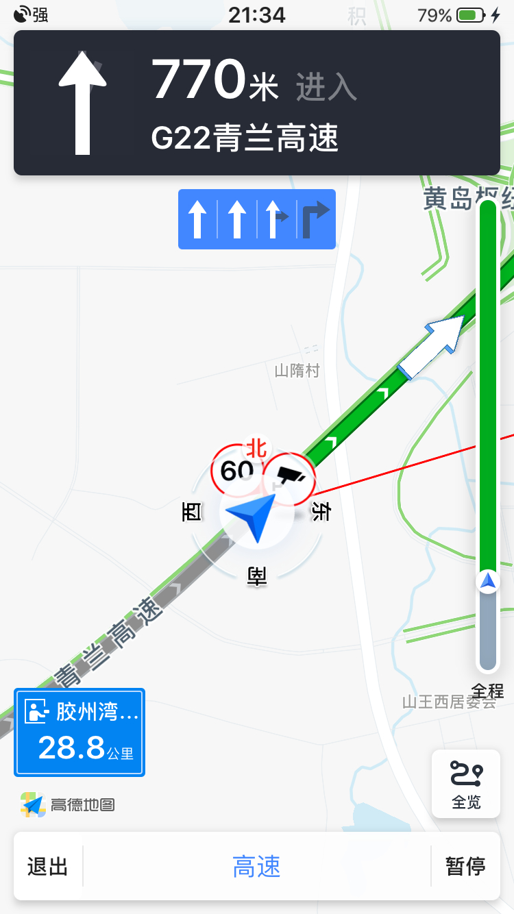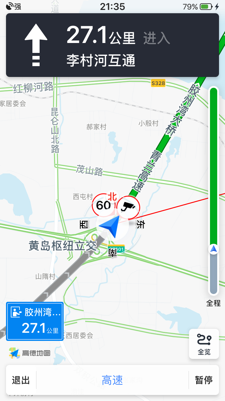 青兰高速黄岛枢纽立交附近,高德导航提示两处测速60,是否有误?