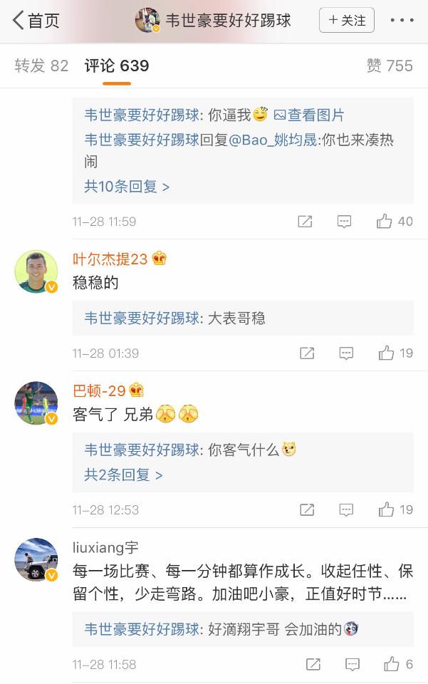 昨天韦发博,然后和巴顿小哥儿俩互动的有内容