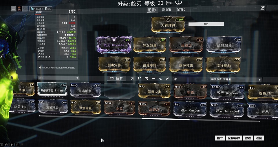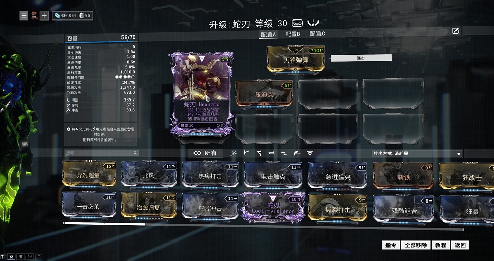这次测试用到的mod 一张蛇刃紫卡, 一张压迫点. 剑风, 一击必杀