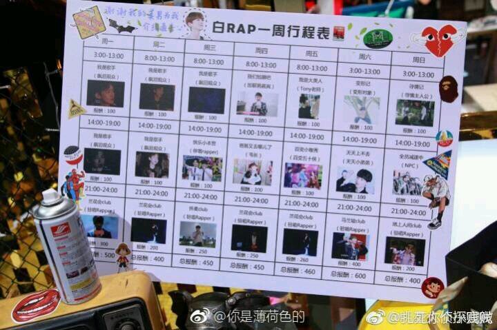 白rap一周行程表