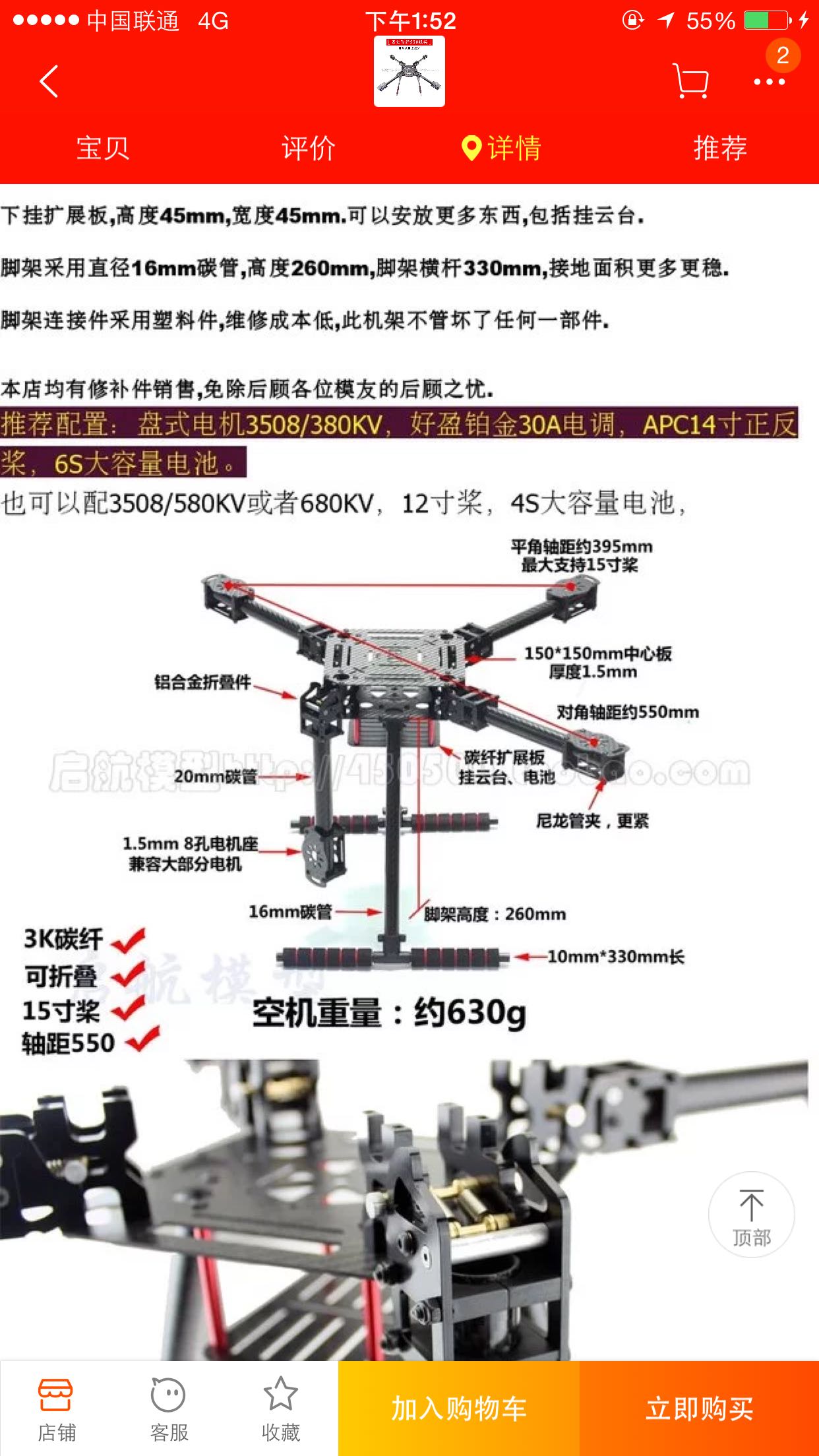 回复 九重霄199131 :单纯尺寸上15寸是可以放下的,但是两个旋翼之间距离小于一定值会有互扰,效率降低。所以一般四轴450上到10寸,550上到13寸