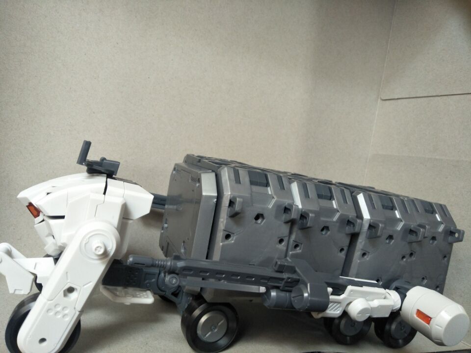 卡车形态,背后的箱子由于零件非常多,能这样自由点的打开,用的是曲轴箱做范例。大小很适合高达hg,fa只能放进轰雷那样接近素体的,我的光镰因为有翅膀放不进去。