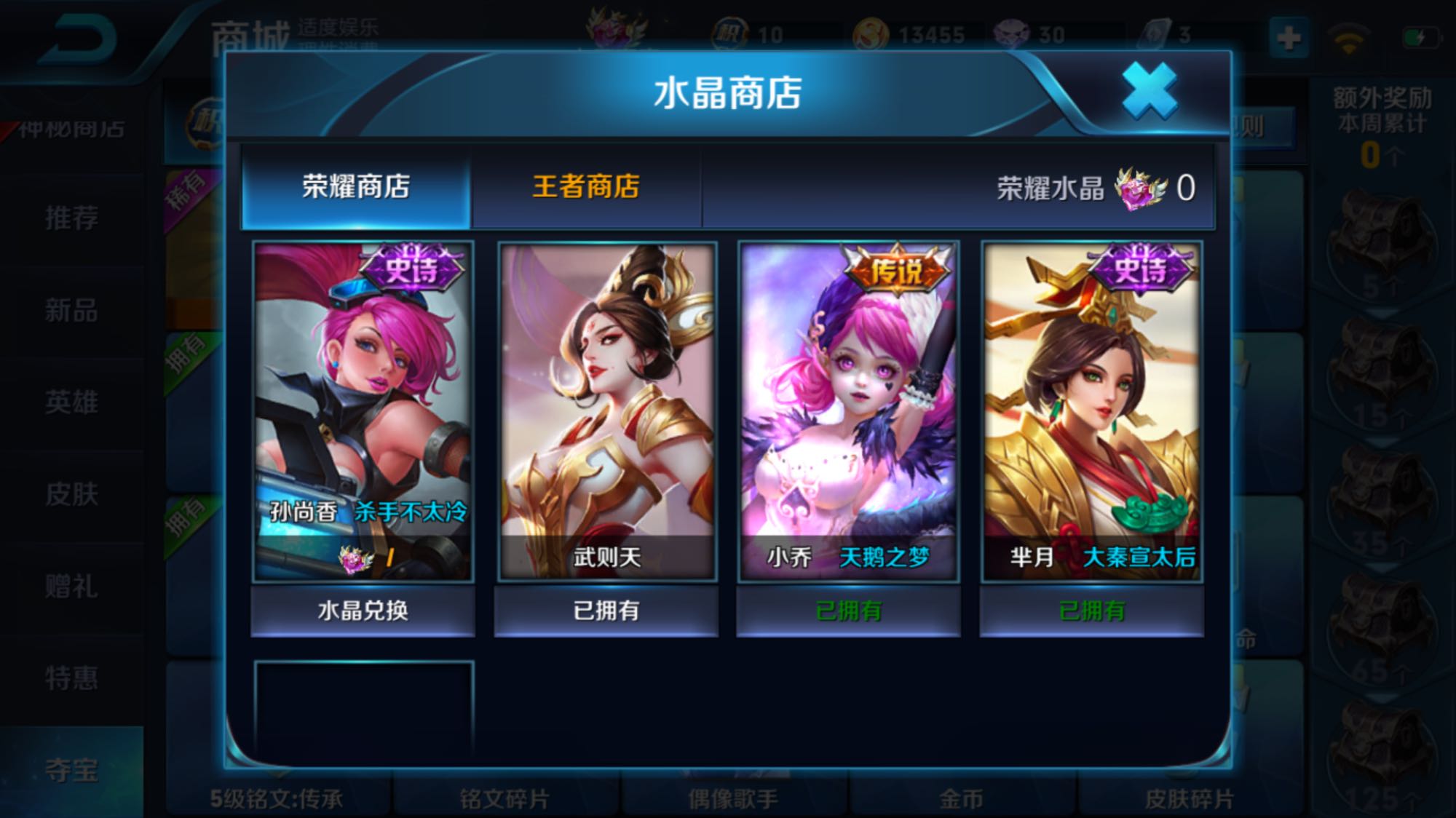 武则天小乔黑天鹅芈月太后都有了,也就么追求了,管它多少多少抽到的,反正就是坑坑坑。