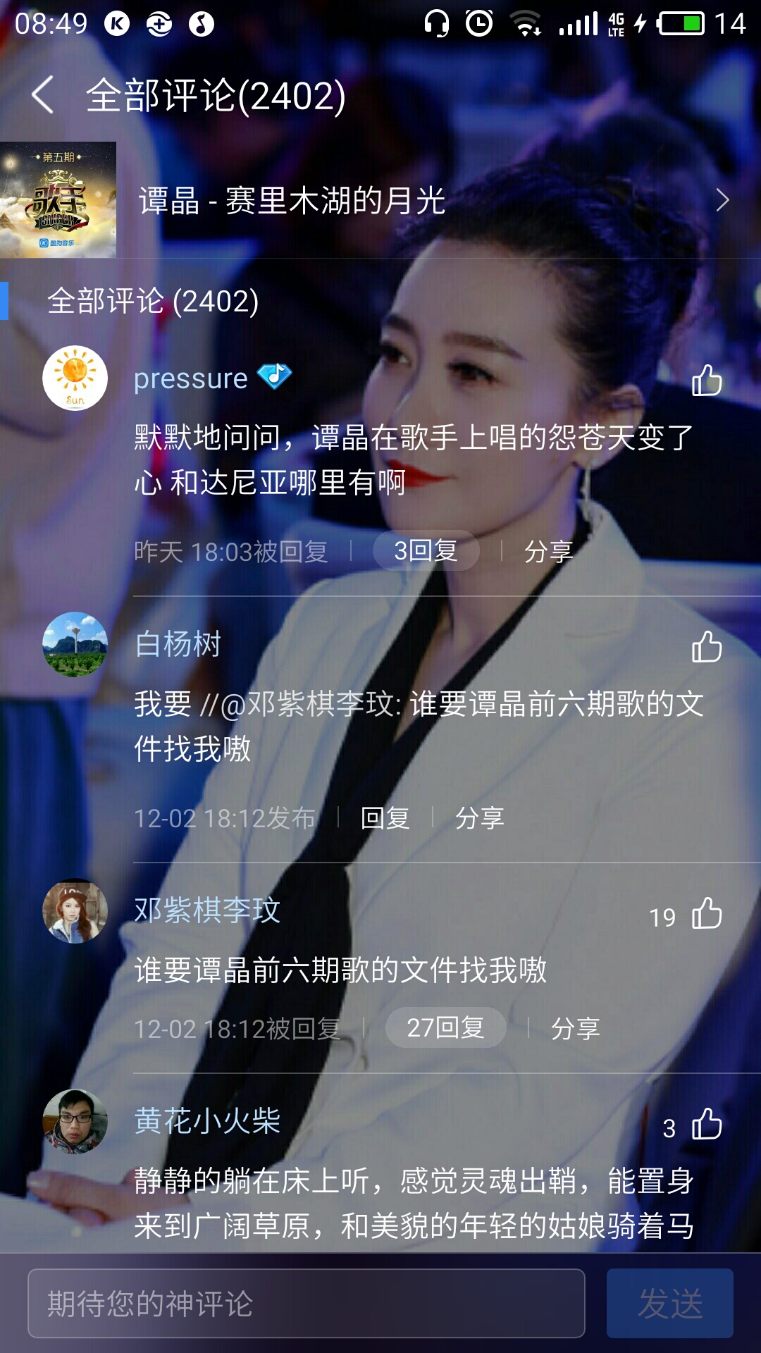 你把歌名后面那串数字弄掉就行了啊,节目上播出过的都可以评论