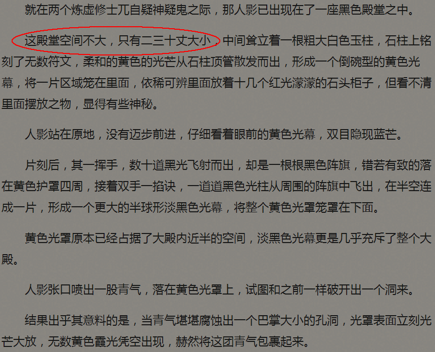楼主说的是二三十丈到底算大还是算小,忘语前后矛盾