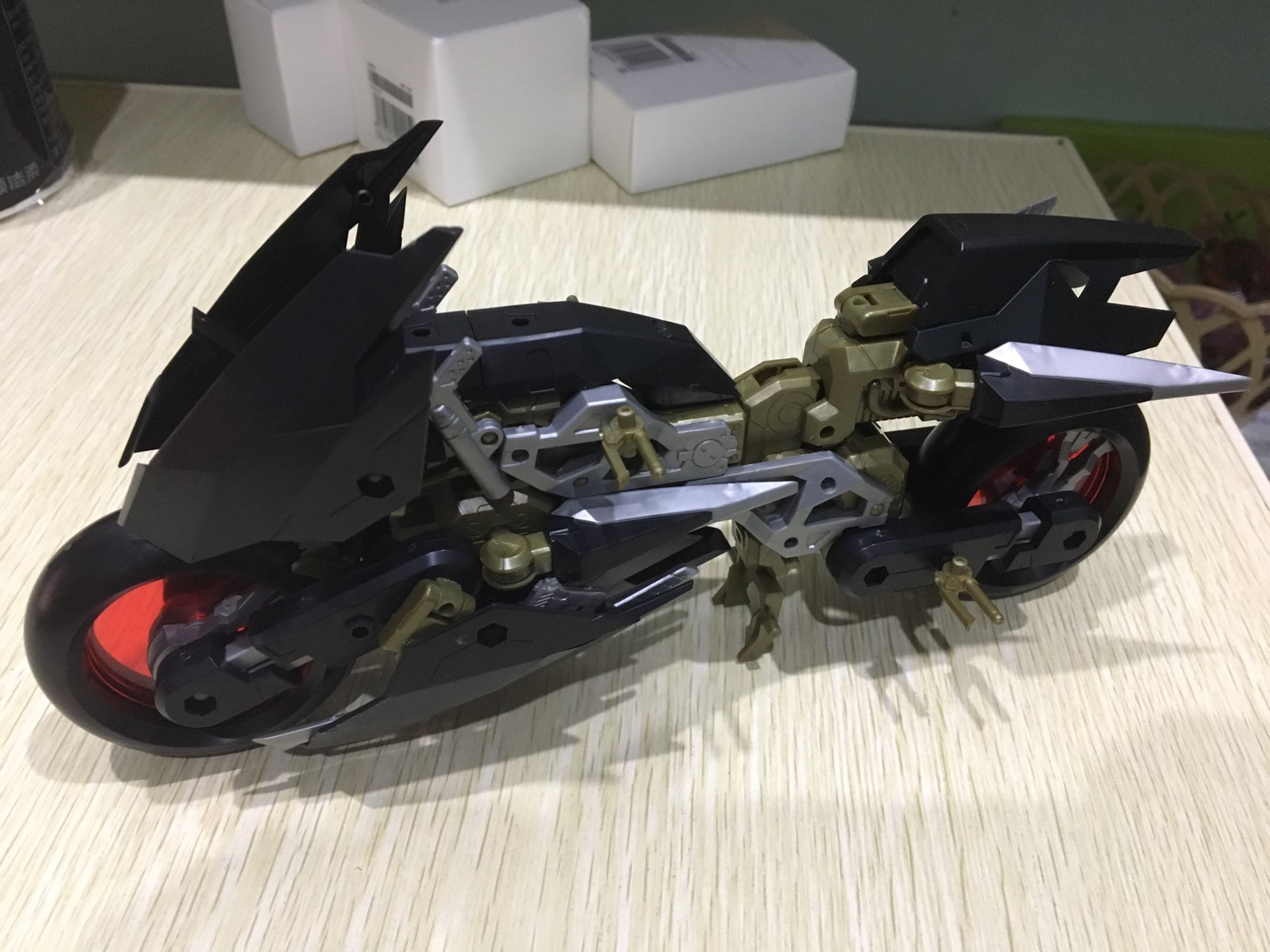 可以在前面加个车灯。不然骨架露太多不好看。