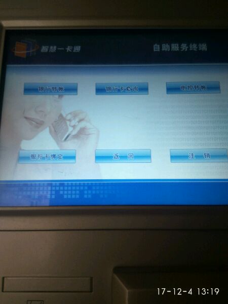 转完账带上小卡片到食堂小姐姐哪里把钱充到小卡片里面