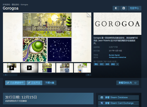 steam商店页面地址:http://store.steampowered.com/app/557600/Gorogoa/