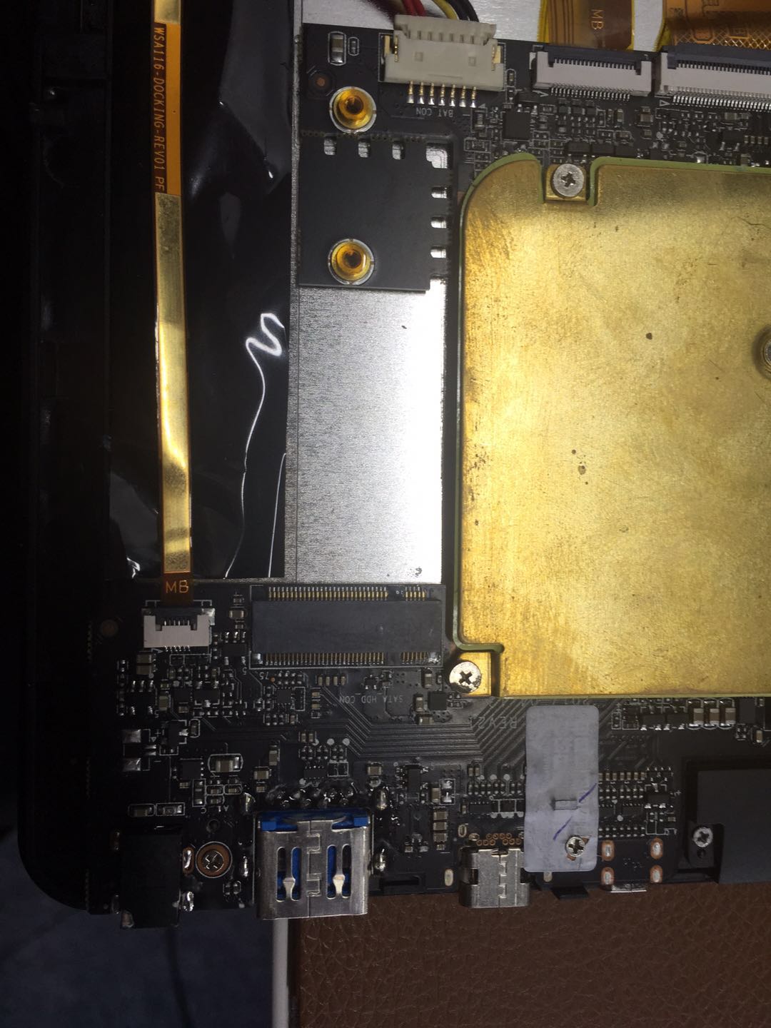 看见蓝色标签了吧,这就是装的SSD,大小正合适。插进去就可以。