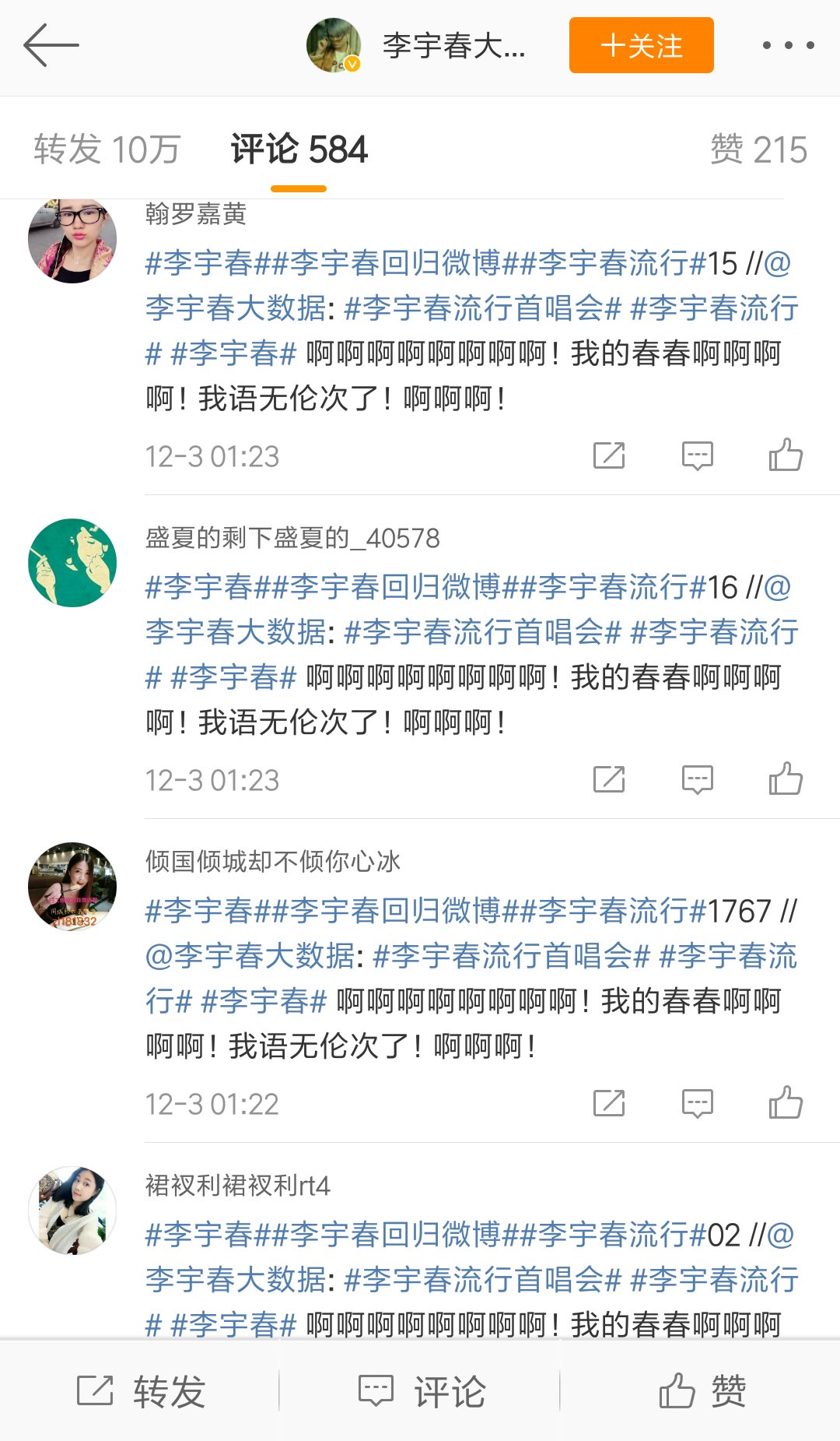 人妖春真有百万粉,一人买一张专辑就超结巴了。用得着每人成千上百买,死 爸都要买。吹个毛丨,垃圾春哥