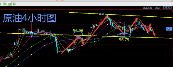 12.6原油行情分析:原油昨天并没有跟随周一的行情收阴,而是收了一根类似十字星的K线,同时行情再次达到了20均线的位置受支撑反弹上涨,说明多空双方目前激烈的争夺中,空方昨天没有能够大跌,但K线也没有收出实体阳线,在大结构是多头趋势的原油中,此收线有望原油继续下行。4小时图上,原油昨天到达57一线受到支撑反弹上涨,今天下方57一线依旧是重要的支撑位置,短线没有跌破此位,行情空头难以延续下挫,但是只要原油一直在20.60的下方,且不破坏M头的形态,下行趋势线没有打破前,短线反弹继续以高空为主,日内关注上方57.9一线阻力,下方关注57一线支撑。