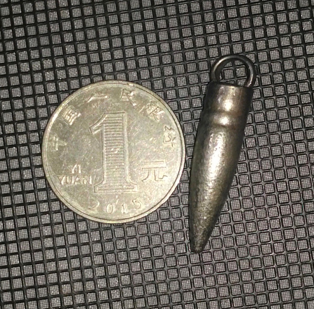 橘皮是在历史长河中自然形成的,抗战老战场挖出来的,酸洗干净锈迹橘皮自现,材质是白铜的(铁的那种早就锈成渣了没法拿来做坠子),用的锡磷青铜丝焊的不锈钢扣环,为了方便焊接,里头的弹芯的铅已化掉倒了,焊好后重新灌的焊锡进去配重。