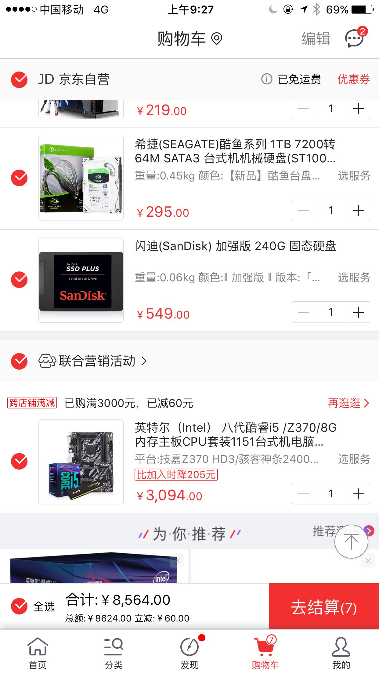 我前两天淘宝买的威刚游戏威龙DDR4-2400 8G 600元;intel 545S 256G硬盘546元。明显比你的好