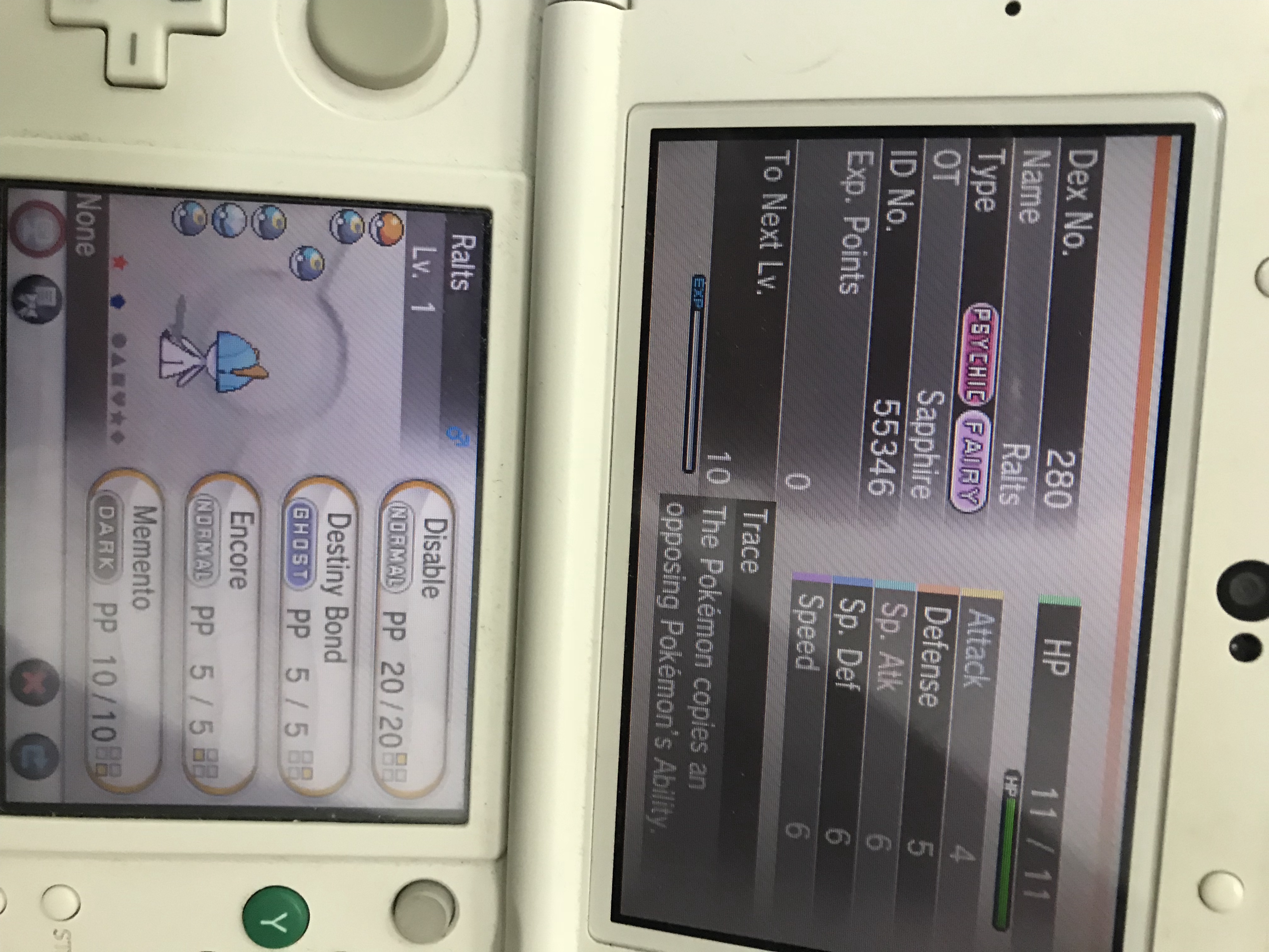 个小时存档丢失)但是一直,一直不出闪…我一度认为我的人品在潜水球梦特♀Ralts的一发入魂上耗尽了…今天中午在去东北餐馆和同学约饭的路上终于出了这孩子,当时在阳光下边走边玩,亮度拉到最大仍然晃得看不太清…突然出现蓝帽子!果然爱约东北王的人运气不会太差(笑)而且是对五女孩子哦