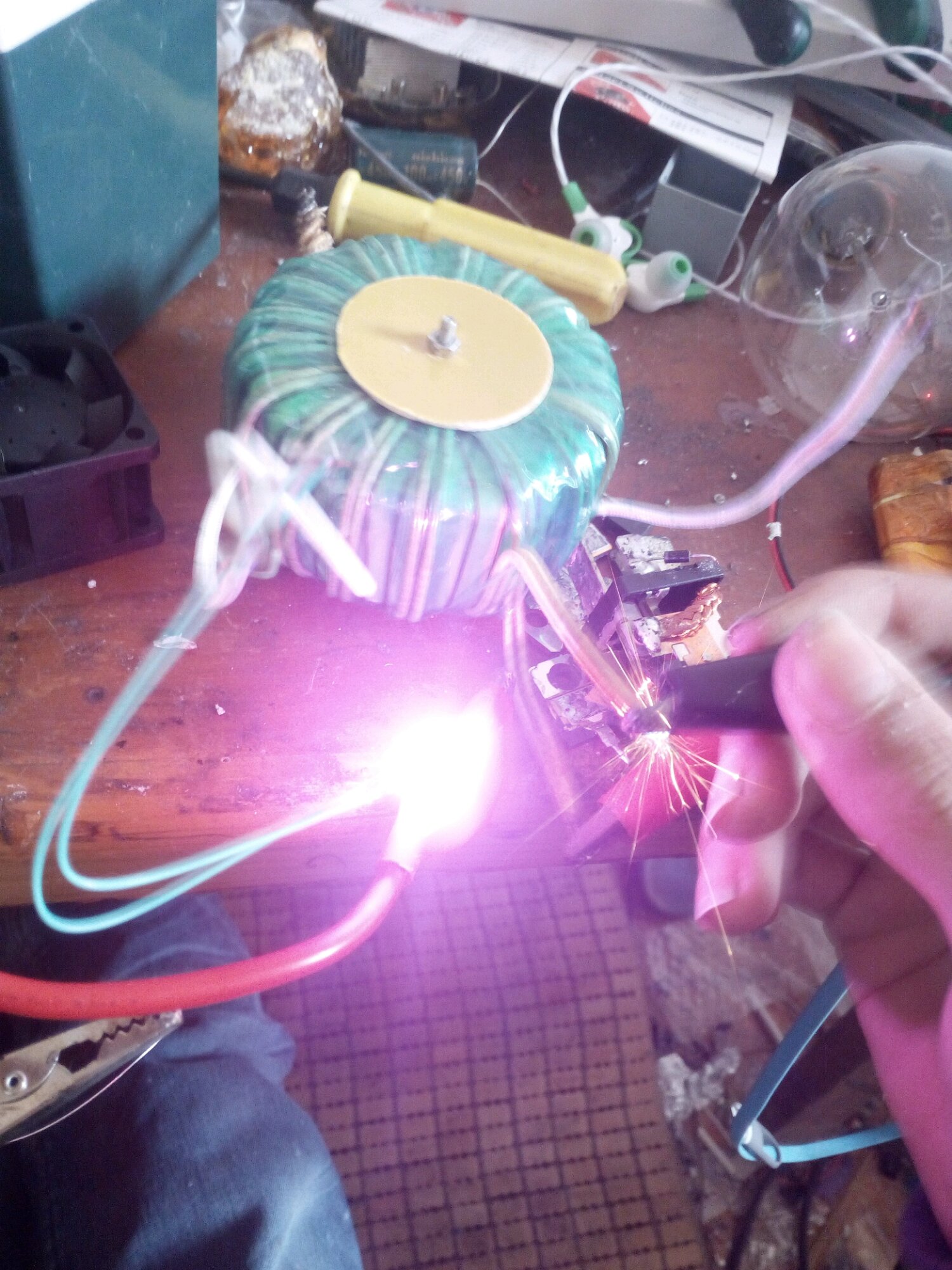 楼主先来 手速升压[滑稽] 逆变变压器点亮奶泡 输入21V Dc