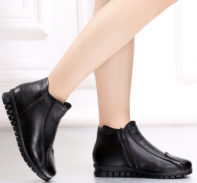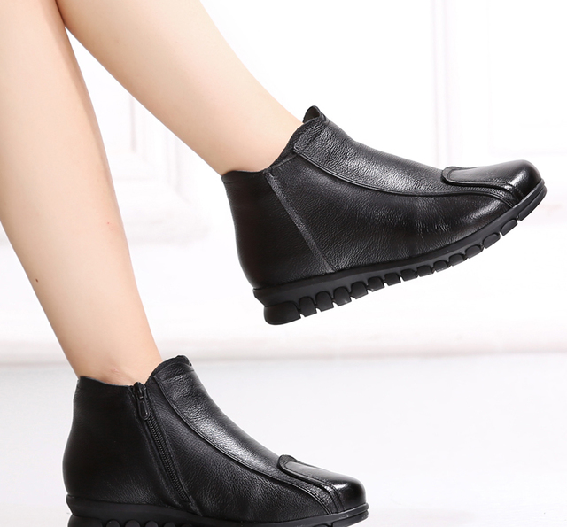 妈妈别穿土爆的棉鞋了,现在流行这样的真皮短靴,保暖又不累脚