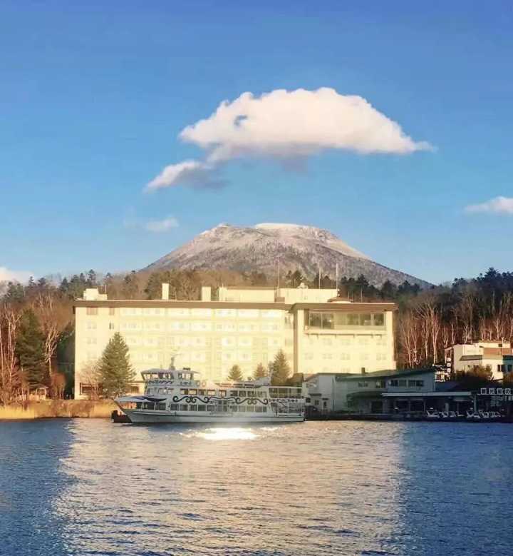 酒店正对着阿寒湖里的山脉