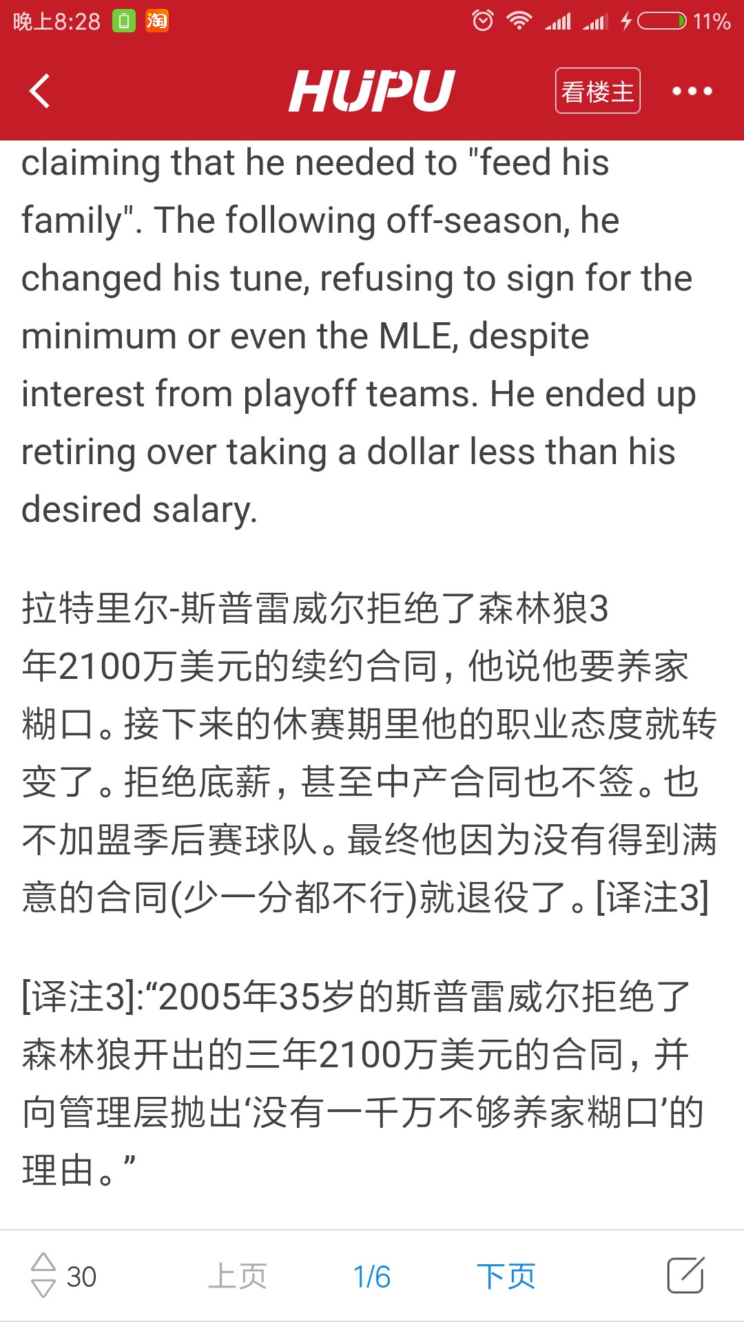 虎扑看到的,讨论球员们做过最后悔莫及的事,提到了在我狼打球的狂人,现在这么惨了?