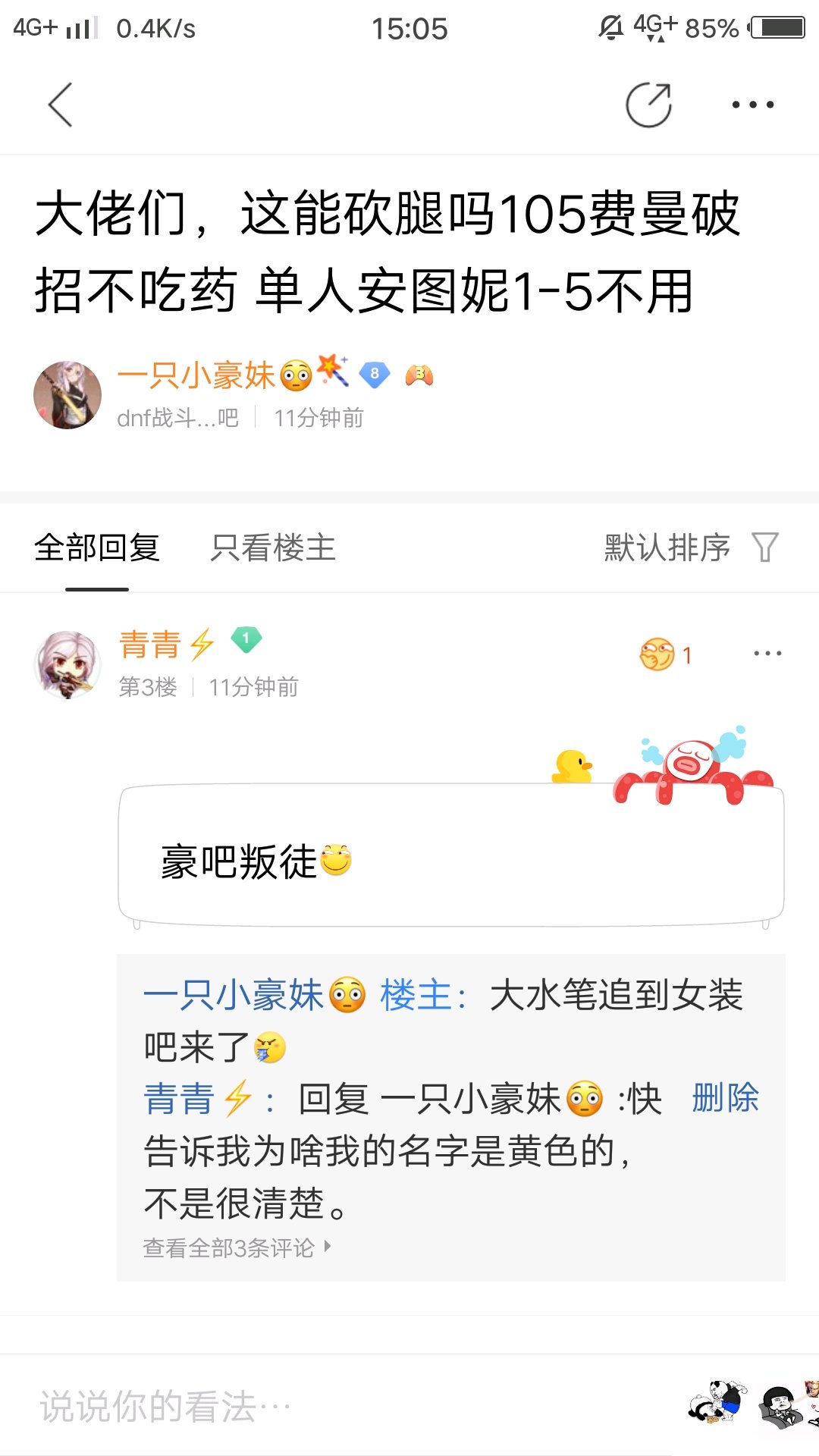 回复 一只小豪妹😳 :快告诉我为啥我的名字是黄色的,不是很清楚。