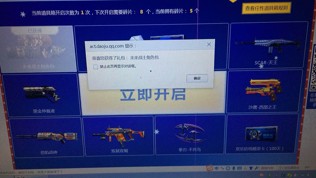 一号箱只有海王,蔷薇和新枪没有,其他的都有,然后心想反正新枪最后出,先买他几十个碎片,然而三发过后...