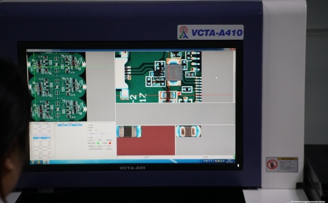 上图为利用AOI全自动光学检测仪对PCBA进行检查,通过数十倍的放大,可以图形化的查看到芯片、阻容贴片过程中是否存在虚焊、空焊等问题。