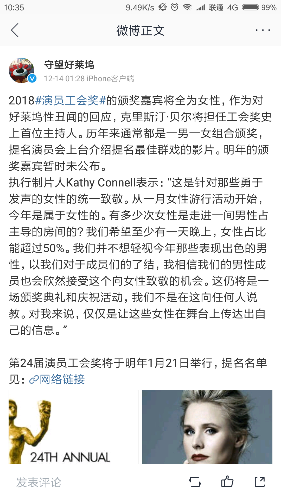震惊!2018演员工会奖最佳女主角最佳女配角全为女性!!