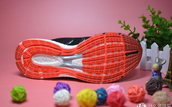 采用了德国橡胶轮胎大厂Continential的马牌大底,提升了鞋底的抓地力和耐用性。在大底布局上沿用了boost系列一贯的Quickstrike方案,前掌采用沟槽镂空设计,后掌则是环状分布,跟部中间大面积镂空露出boost材料,目的是降低鞋子的重量。足弓位置使用银色的Torsion System中桥辅助支撑,既强化前后掌的连接性,又提供了一定的防扭转能力,有效提升了跑鞋的稳定性。当然作为实用级的跑鞋,并没有像adios或者UB那样将中桥延伸至前掌,只能说够用就好。鞋底耐磨程度方面,多数品牌只在后掌使用耐磨橡胶,而前掌使用发泡橡胶。boston 5的马牌大底采用一体成型工艺,没有使用发泡橡胶,耐用度值得期待。