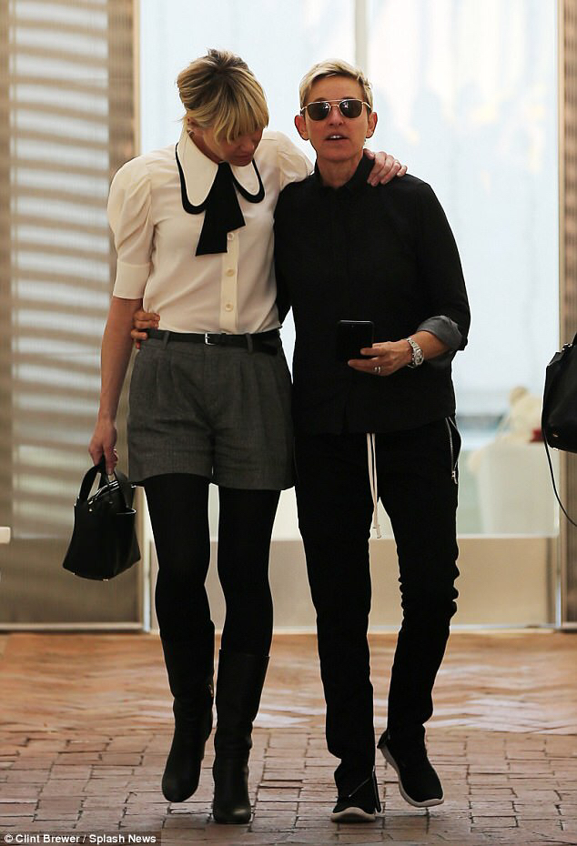 Ellen DeGeneres is sophisticated chic while out with wife Portia de Rossi...after being forced to flee their home from wildfires.