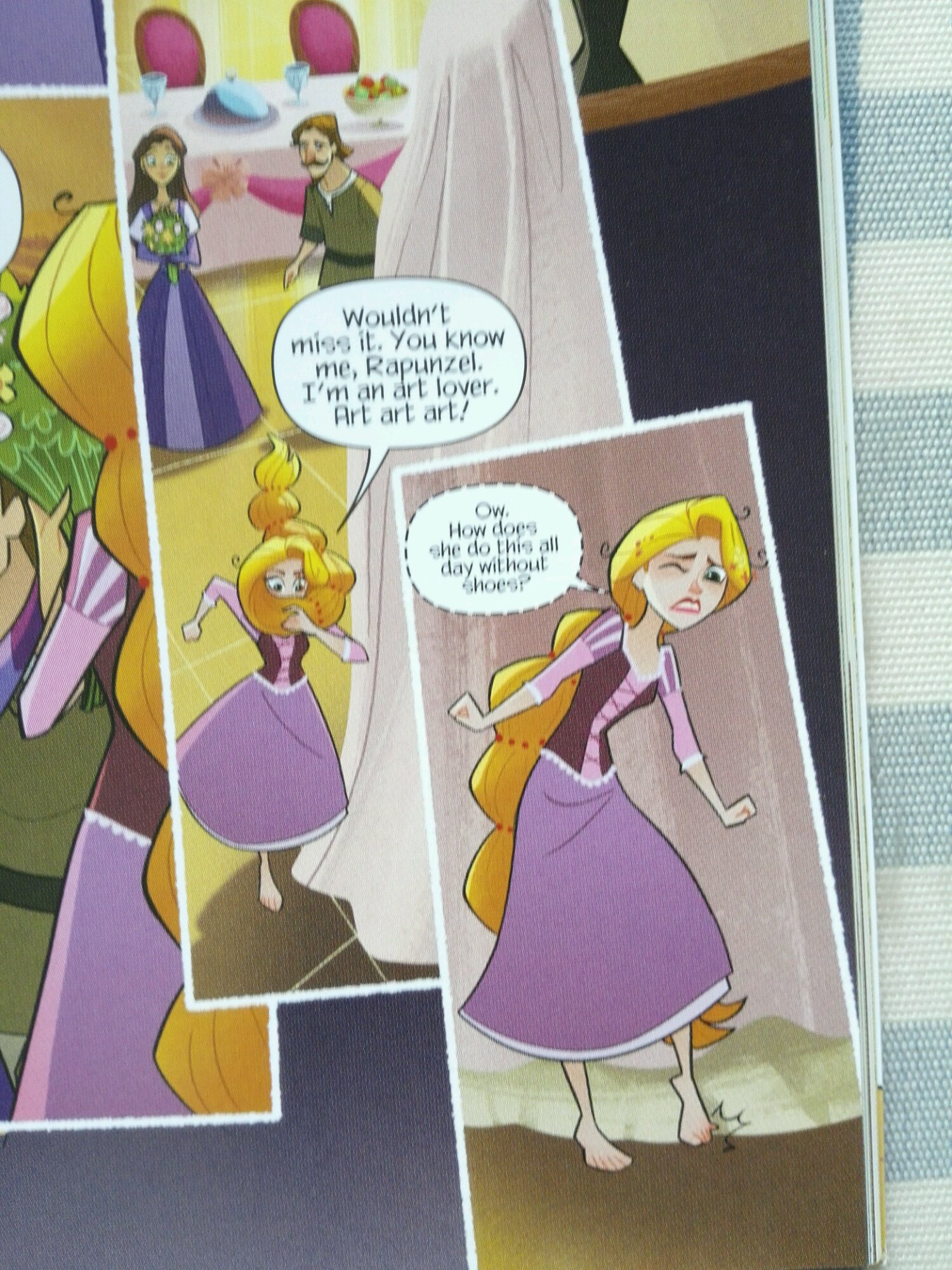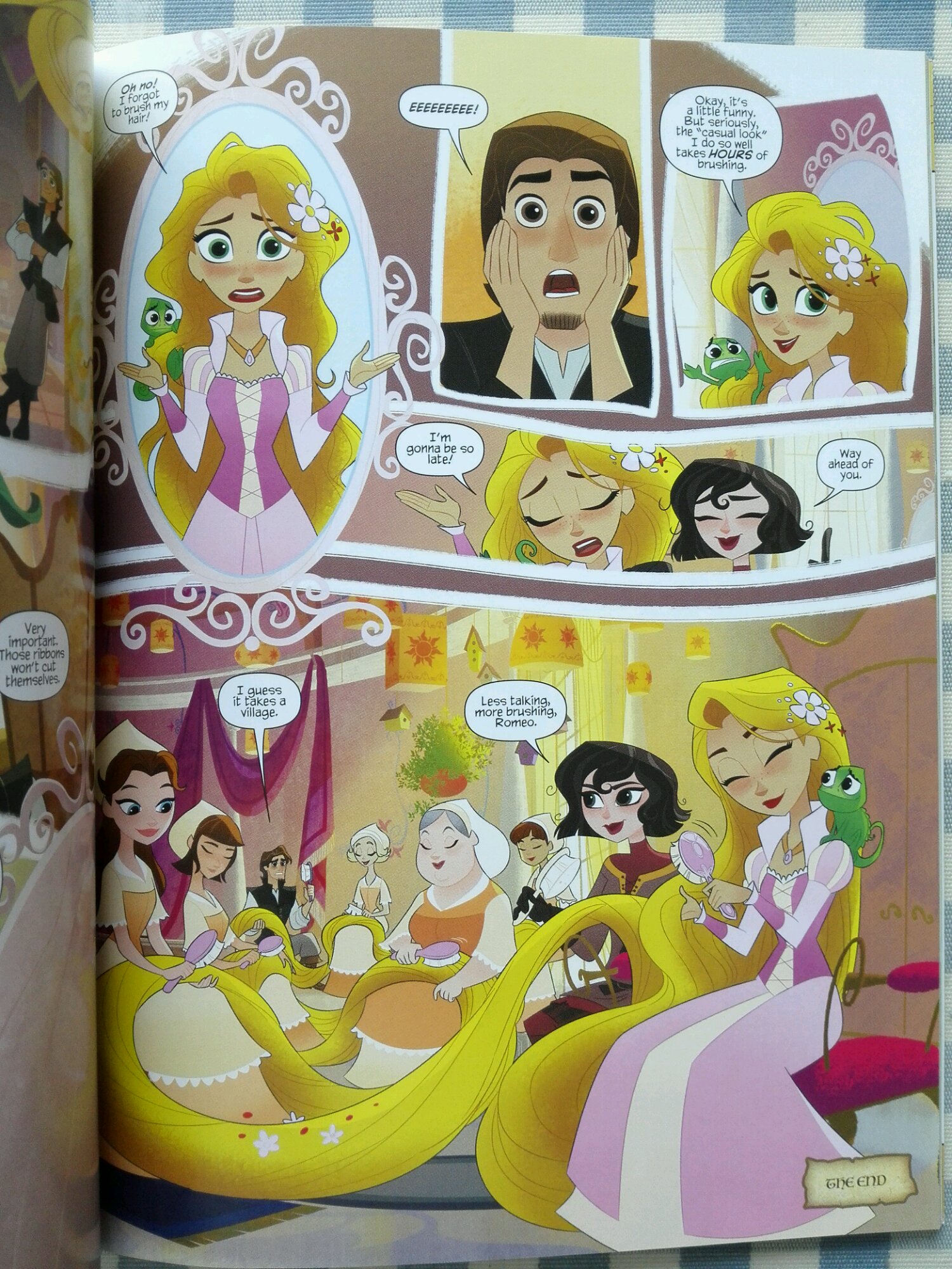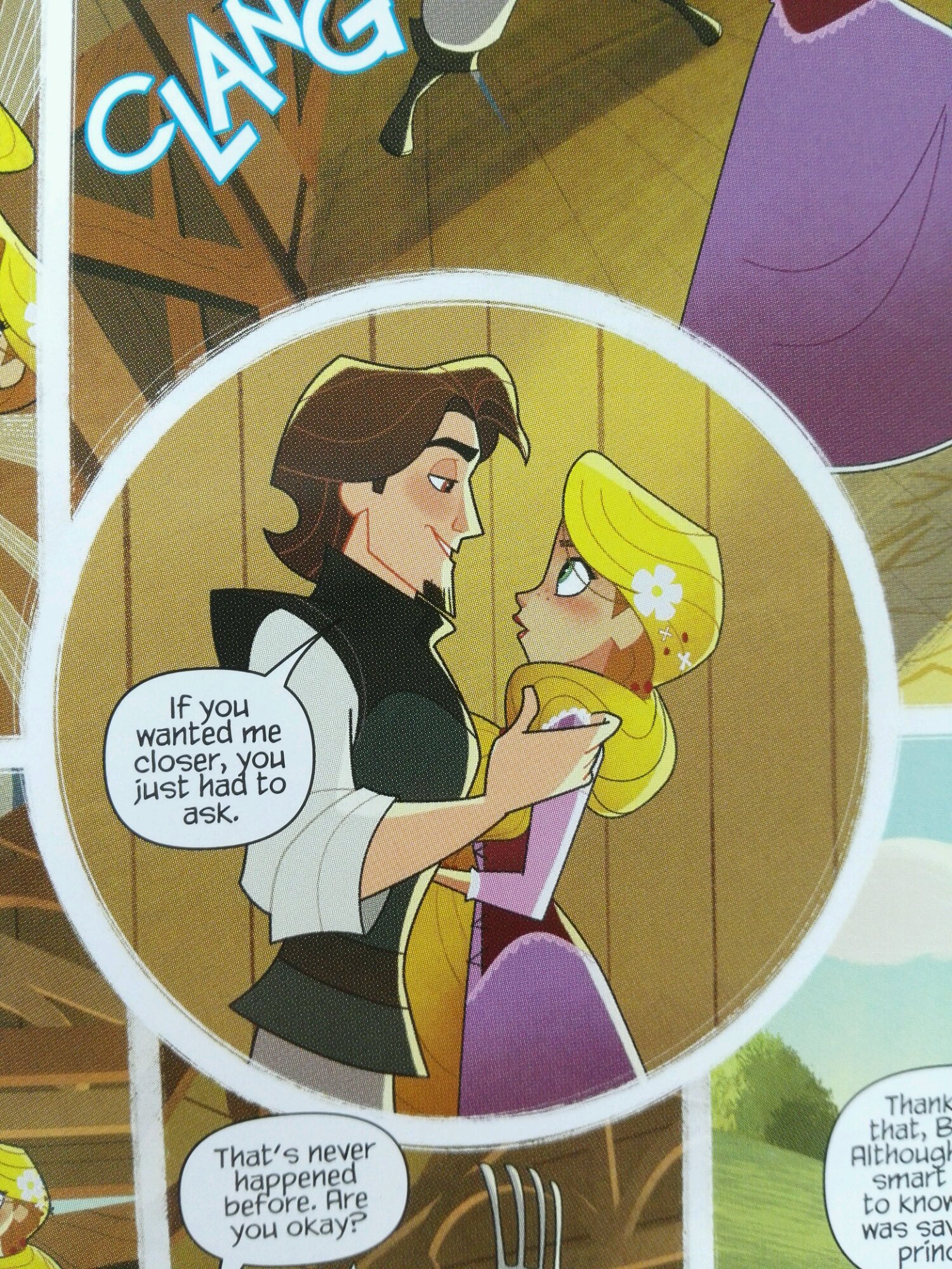 还有这个,应该是佩佩头发卷住尤金才对,结果作者估计是搞错图层了,头发在尤金背后来着