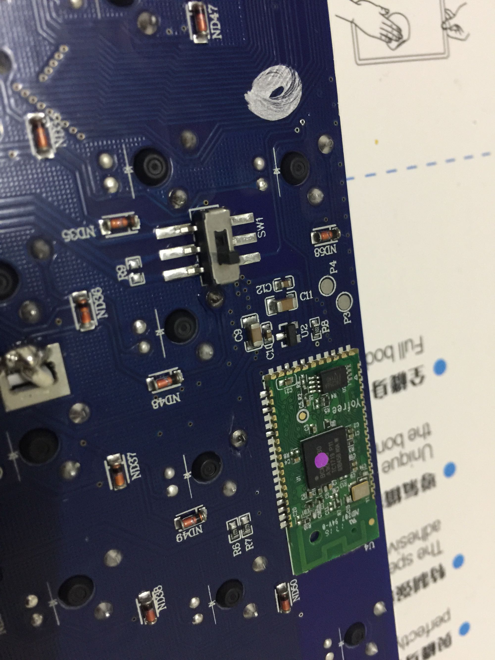 我的单模加上蓝牙模块了,还是不能用,左下角区域还有几个零件