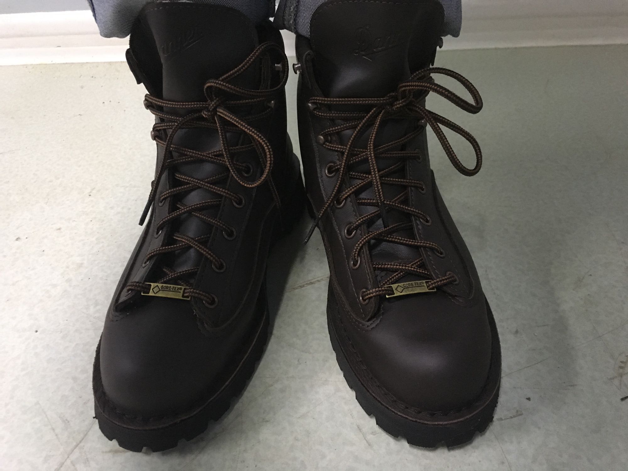 3、第三双便试水了danner,之前看吧里的帖子,觉得33020很帅,于是去中亚上看,但是算上关税将近2000,后来无意中看到45200,居然便宜几百,于是决定入手。但是8码的只有D,没加宽版的,试穿确实有点窄脚(或者说很有包裹感