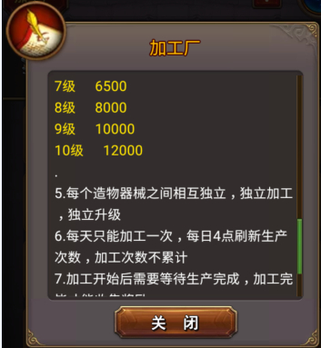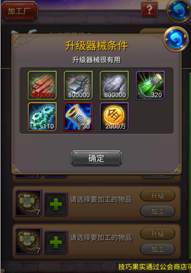 PS:该不会现在还有小伙伴不知道加工器械可以升级的吧!加工器械等级越高可加工的道具跟数量越多!