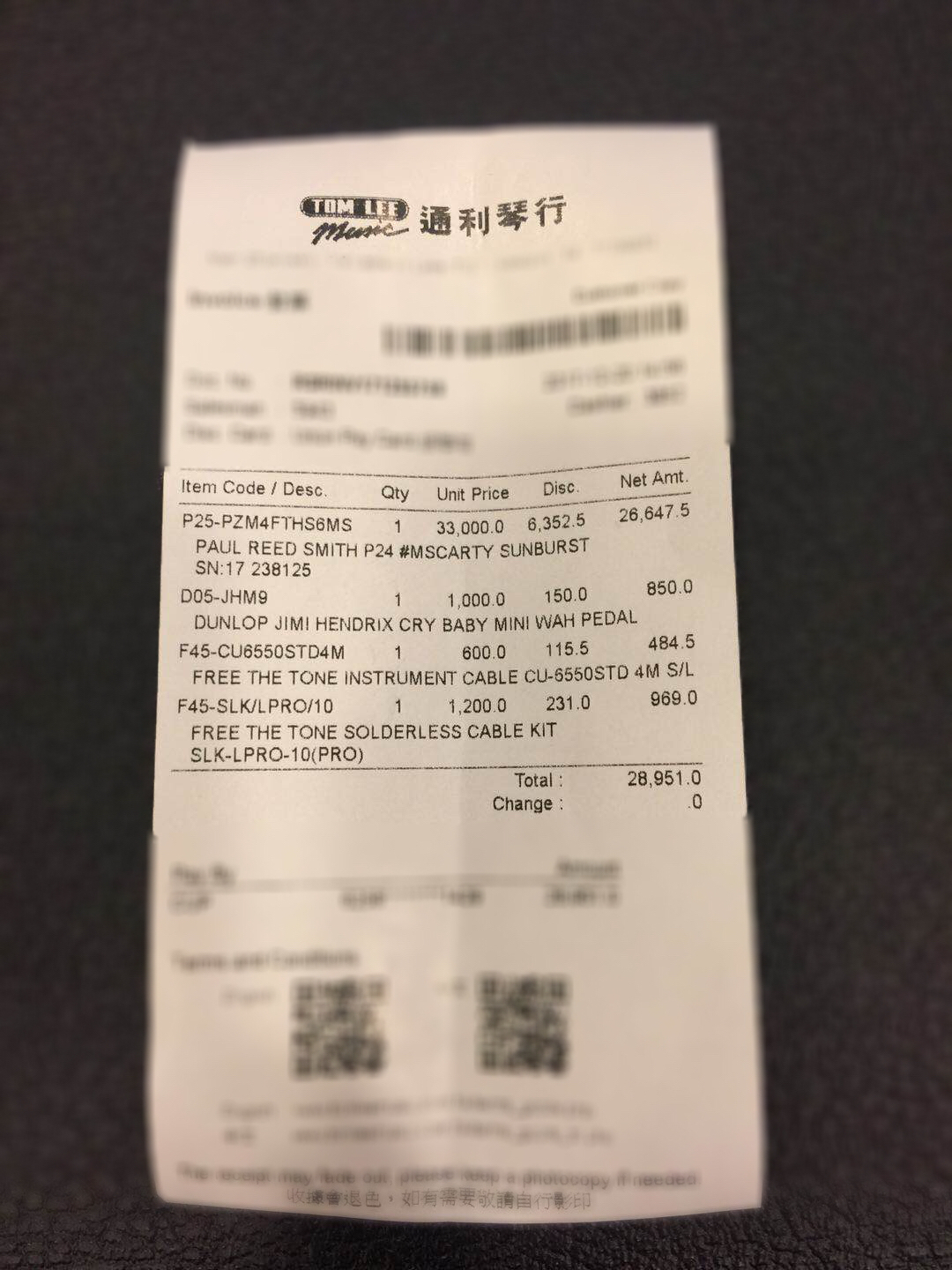 去通利败了一把…一开始看帖子,看淘宝,看官网确定目标PRS Custom 24,去了通利才发现原来还有Peizo啊!顿时有点儿蒙圈,搜一圈基本没见到谁发peizo的,看了一个之前P22的视频,嗯…整!没有亲临通利但给我的感觉是通利怎么啥也有啊!问这问那都能问出个一二三来。捎带脚的又买了几样,再不敢问了,怕一问有就又要忍不住下单了…