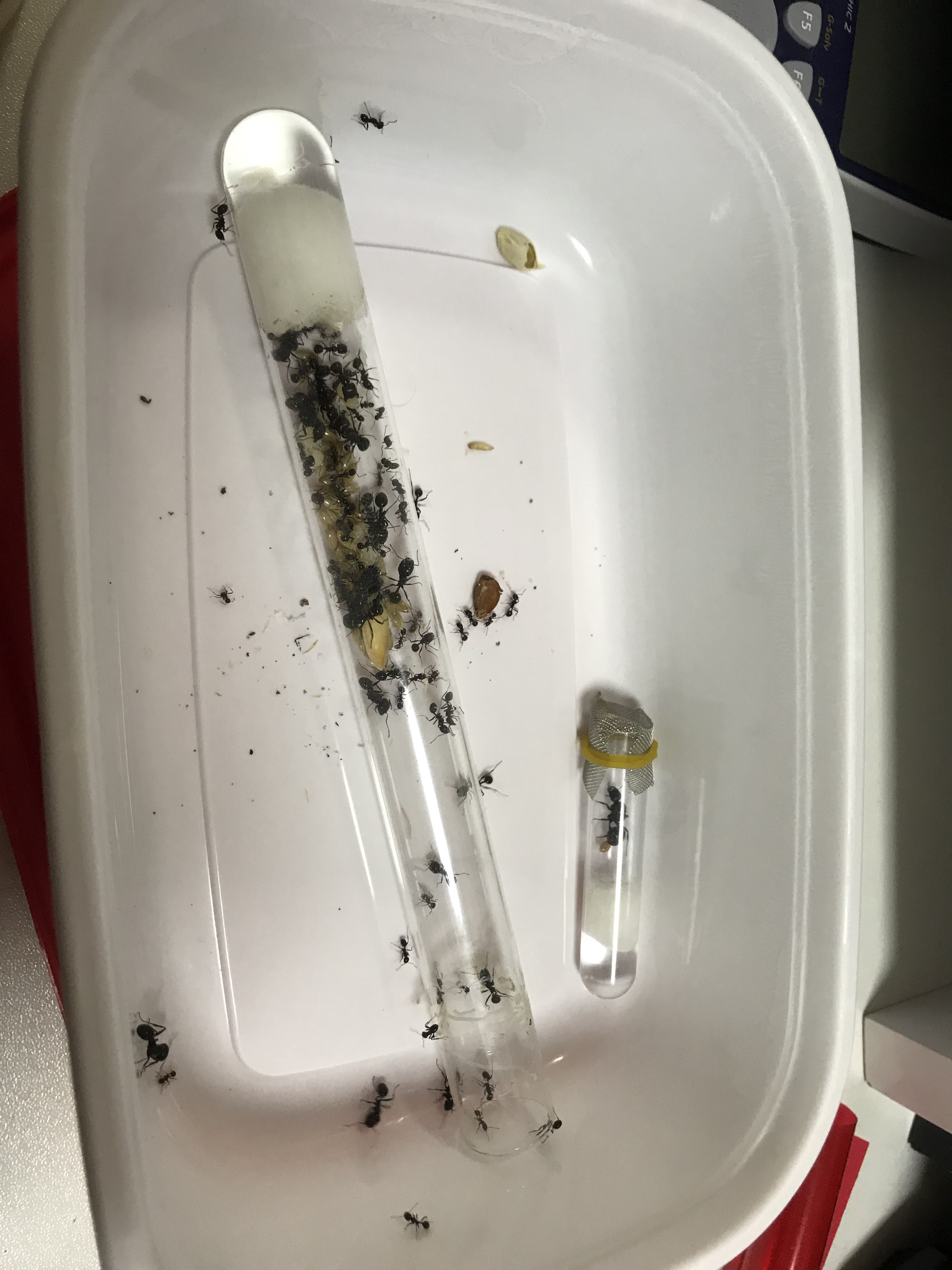 回复 其我の人 :嗯 很有可能 所以我把两个试管口放得特别近 蚁后也专门放到一个特别小的试管里 增加接触