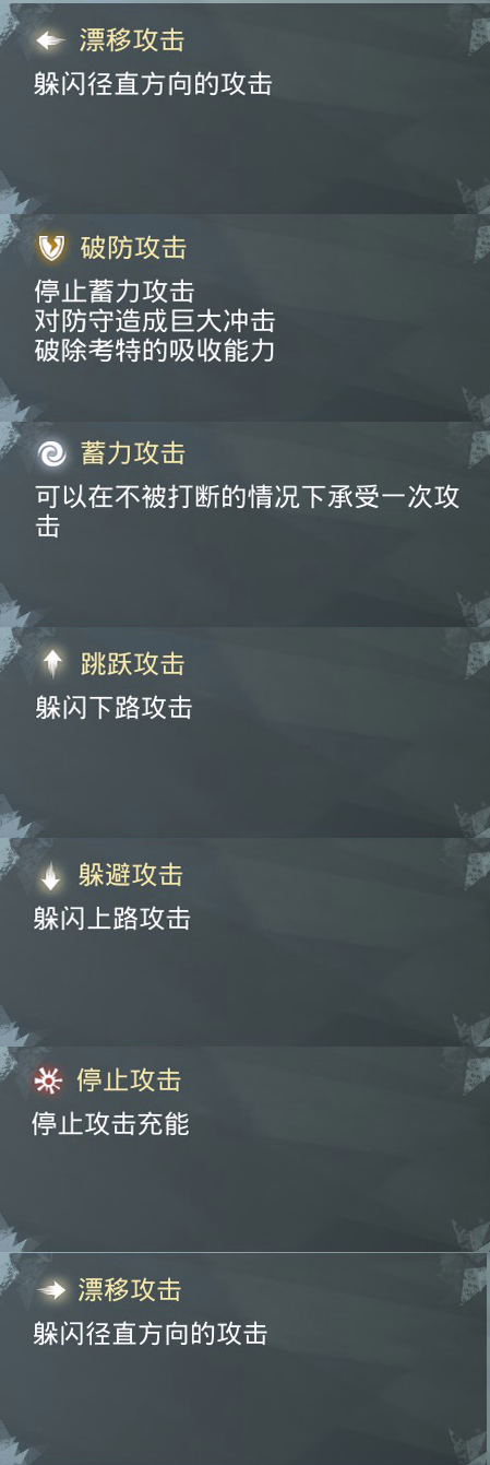 这是一个新的招式列表,我还没有改过招,里面的招数你可以按自己喜好替换,现在我先说明一下有哪几种特殊攻击
