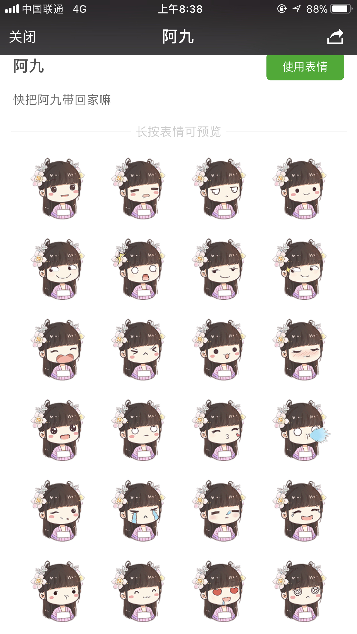 分享给各位粉丝。微信表情商店搜索【阿九】就可以免费下载使用啦。2楼送一张高清大图,想要所有大图的留言,分享给大家。