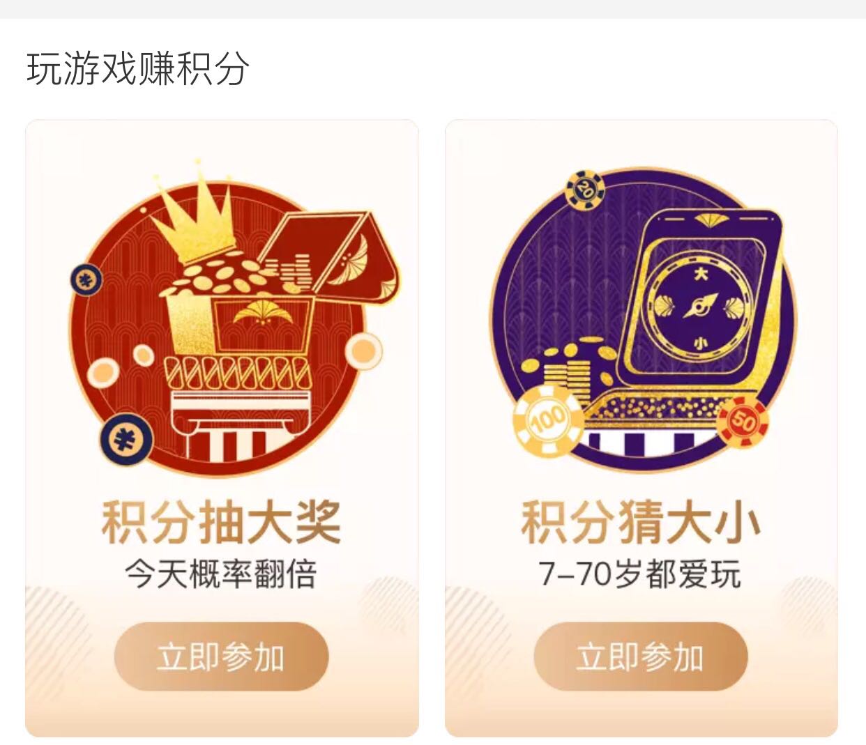 3、“玩游戏赚积分”中有好几种游戏,建议选择“积分抽大奖”和“积分猜大小”(第三张图所示)