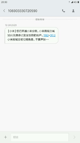 小米商城里下有开通小米分期送50元优惠券,小米金服却说没有!简直是无语了!