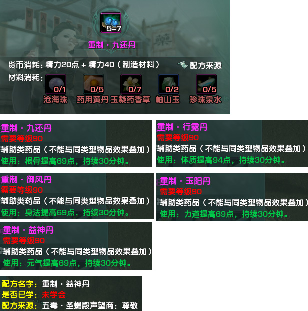 配方来源:稻香秘事副本声望