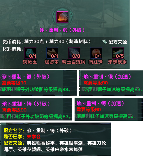 配方来源:新大战五小随机掉落